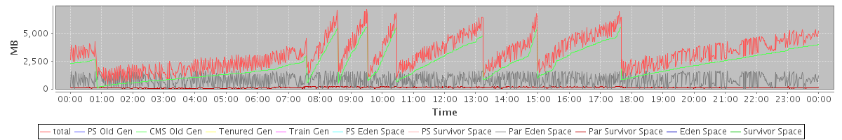 avg(total) = 3197.15 avg(PS Old Gen) = 0.00 avg(CMS Old Gen) = 2270.43 avg(Tenured Gen) = 0.00 avg(Train Gen) = 0.00 avg(PS Eden Space) = 0.00 avg(PS Survivor Space) = 0.00 avg(Par Eden Space) = 809.11 avg(Par Survivor Space) = 117.61 avg(Eden Space) = 0.00 avg(Survivor Space) = 0.00
