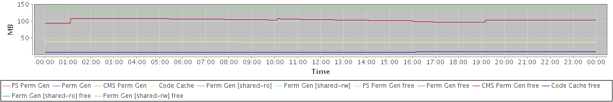 avg(PS Perm Gen) = 0.00 avg(Perm Gen) = 0.00 avg(CMS Perm Gen) = 134.99 avg(Code Cache) = 38.29 avg(Perm Gen [shared-ro]) = 0.00 avg(Perm Gen [shared-rw]) = 0.00 avg(PS Perm Gen free) = 0.00 avg(Perm Gen free) = 0.00 avg(CMS Perm Gen free) = 103.19 avg(Code Cache free) = 8.34 avg(Perm Gen [shared-ro] free) = 0.00 avg(Perm Gen [shared-rw] free) = 0.00