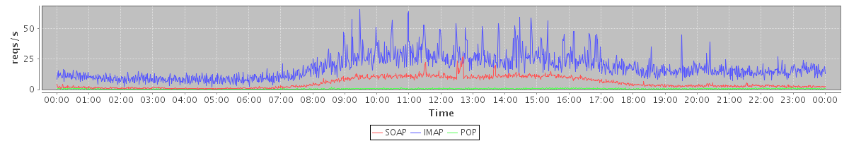 Host zm21.stanford.edu: Mailboxd: Request Rate by Client Protocol