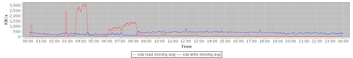 avg(sda read) = 13.41 avg(sda write) = 15.72