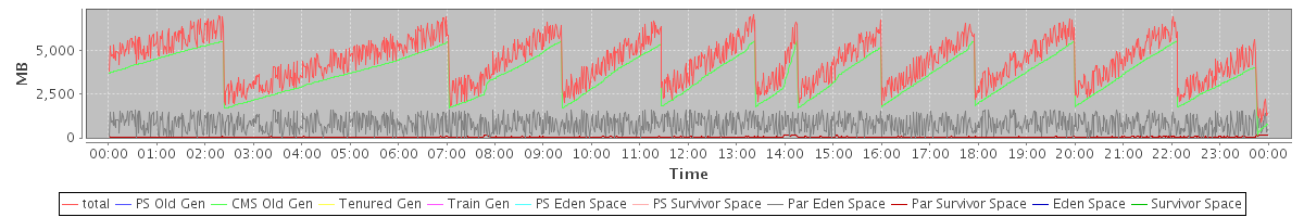 avg(total) = 4433.71 avg(PS Old Gen) = 0.00 avg(CMS Old Gen) = 3585.74 avg(Tenured Gen) = 0.00 avg(Train Gen) = 0.00 avg(PS Eden Space) = 0.00 avg(PS Survivor Space) = 0.00 avg(Par Eden Space) = 804.33 avg(Par Survivor Space) = 43.64 avg(Eden Space) = 0.00 avg(Survivor Space) = 0.00