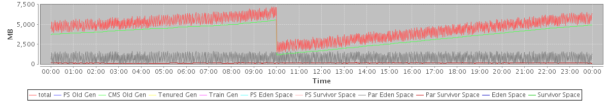 avg(total) = 4639.04 avg(PS Old Gen) = 0.00 avg(CMS Old Gen) = 3691.78 avg(Tenured Gen) = 0.00 avg(Train Gen) = 0.00 avg(PS Eden Space) = 0.00 avg(PS Survivor Space) = 0.00 avg(Par Eden Space) = 803.08 avg(Par Survivor Space) = 144.18 avg(Eden Space) = 0.00 avg(Survivor Space) = 0.00