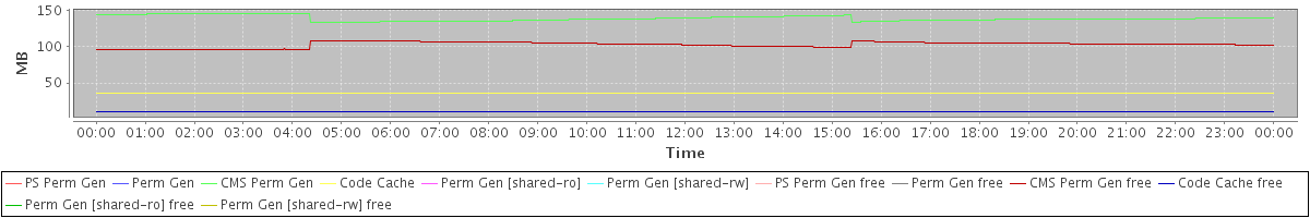 avg(PS Perm Gen) = 0.00 avg(Perm Gen) = 0.00 avg(CMS Perm Gen) = 138.47 avg(Code Cache) = 35.98 avg(Perm Gen [shared-ro]) = 0.00 avg(Perm Gen [shared-rw]) = 0.00 avg(PS Perm Gen free) = 0.00 avg(Perm Gen free) = 0.00 avg(CMS Perm Gen free) = 102.48 avg(Code Cache free) = 10.58 avg(Perm Gen [shared-ro] free) = 0.00 avg(Perm Gen [shared-rw] free) = 0.00