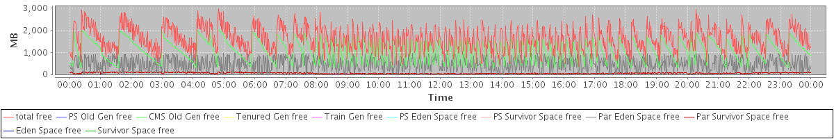 avg(total free) = 1617.03 avg(PS Old Gen free) = 0.00 avg(CMS Old Gen free) = 1085.98 avg(Tenured Gen free) = 0.00 avg(Train Gen free) = 0.00 avg(PS Eden Space free) = 0.00 avg(PS Survivor Space free) = 0.00 avg(Par Eden Space free) = 477.49 avg(Par Survivor Space free) = 53.57 avg(Eden Space free) = 0.00 avg(Survivor Space free) = 0.00