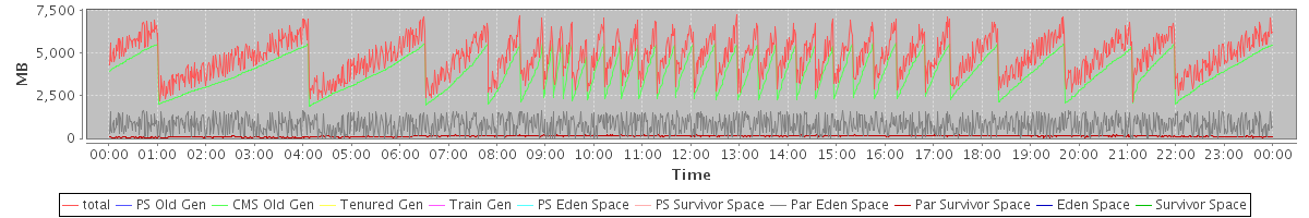 avg(total) = 4767.84 avg(PS Old Gen) = 0.00 avg(CMS Old Gen) = 3835.83 avg(Tenured Gen) = 0.00 avg(Train Gen) = 0.00 avg(PS Eden Space) = 0.00 avg(PS Survivor Space) = 0.00 avg(Par Eden Space) = 803.84 avg(Par Survivor Space) = 128.18 avg(Eden Space) = 0.00 avg(Survivor Space) = 0.00