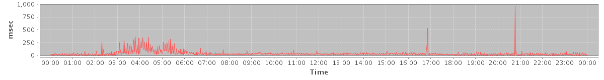 max(MsgActionRequest.move) = 326.00 max(GetContactsRequest) = 1200.00 max(MsgActionRequest.delete) = 4800.00 max(NoOpRequest) = 389.00 max(MsgActionRequest.trash) = 231.00 max(MsgActionRequest.update) = 4398.00 max(WaitSetRequest) = 330.00 max(GetFolderRequest) = 383.00 max(SyncRequest) = 687.00 max(GetAppointmentRequest) = 1332.00
