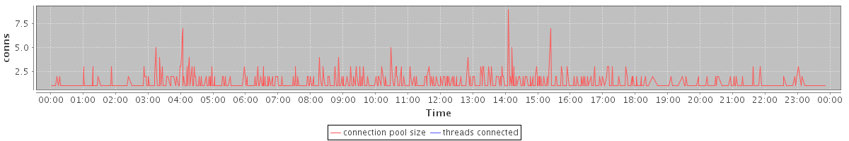 avg(connection pool size) = 0.75 avg(threads connected) = 0.00