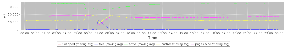 avg(swapped) = 97.88 avg(free) = 752.17 avg(active) = 32810.31 avg(inactive) = 13349.83 avg(page cache) = 16630.26