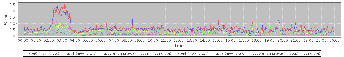 avg(cpu0) = 0.09 avg(cpu1) = 0.08 avg(cpu2) = 0.03 avg(cpu3) = 0.04 avg(cpu4) = 0.02 avg(cpu5) = 0.02 avg(cpu6) = 0.02 avg(cpu7) = 0.01