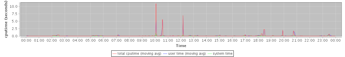 avg(total cputime) = 0.05 avg(user time) = 0.05 avg(system time) = 0.00