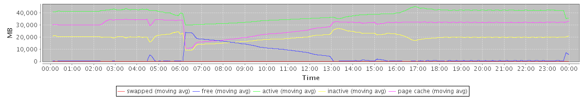 avg(swapped) = 75.77 avg(free) = 4184.38 avg(active) = 38879.20 avg(inactive) = 19822.11 avg(page cache) = 29103.07