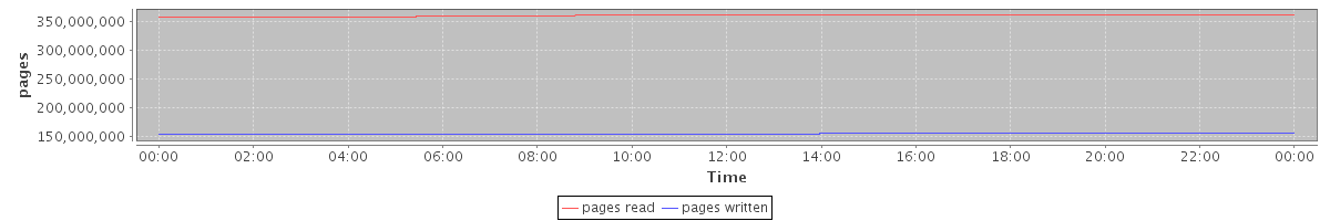 avg(pages read) = 359641790.76 avg(pages written) = 154133706.13