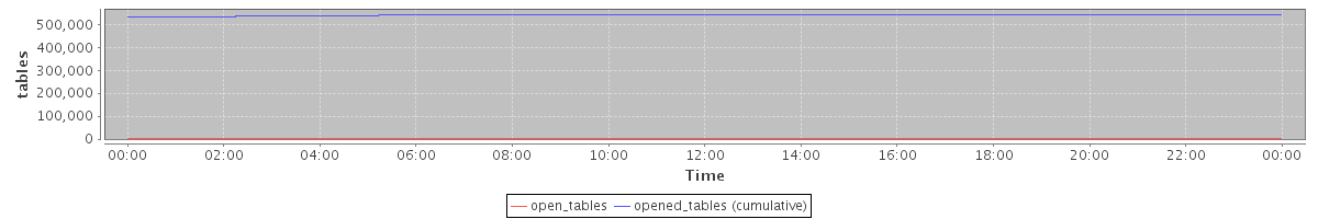 avg(open_tables) = 1192.06 avg(opened_tables (cumulative)) = 539137.25