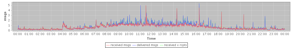 avg(received msgs) = 0.66 avg(delivered msgs) = 0.76 avg(received x rcpts) = 0.81