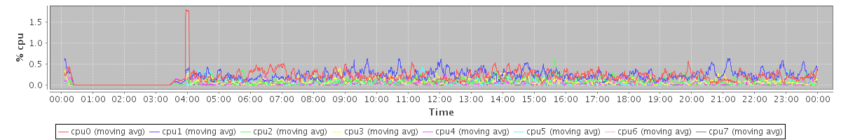 avg(cpu0) = 0.18 avg(cpu1) = 0.22 avg(cpu2) = 0.12 avg(cpu3) = 0.10 avg(cpu4) = 0.20 avg(cpu5) = 0.06 avg(cpu6) = 0.05 avg(cpu7) = 0.03