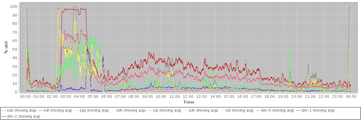 avg(sde) = 17.31 avg(sdf) = 17.34 avg(sdg) = 10.70 avg(sdh) = 9.15 avg(sdj) = 2.31 avg(sdk) = 10.70 avg(sdl) = 9.15 avg(dm-0) = 11.68 avg(dm-1) = 27.48 avg(dm-2) = 3.87
