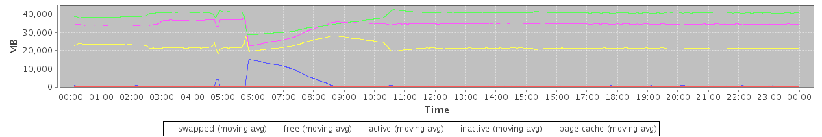 avg(swapped) = 5.48 avg(free) = 1502.96 avg(active) = 39106.52 avg(inactive) = 22120.52 avg(page cache) = 34098.87
