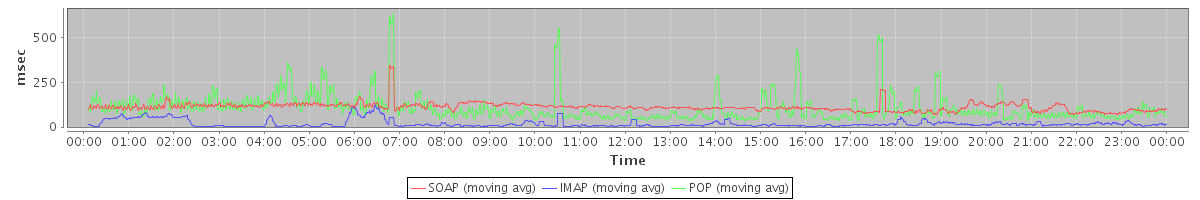 avg(SOAP) = 111.98 avg(IMAP) = 18.72 avg(POP) = 106.87