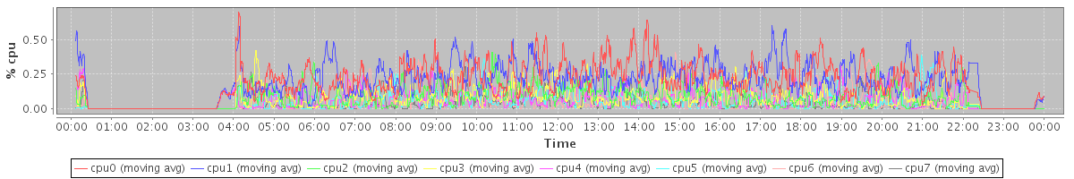 avg(cpu0) = 0.16 avg(cpu1) = 0.20 avg(cpu2) = 0.11 avg(cpu3) = 0.10 avg(cpu4) = 0.11 avg(cpu5) = 0.08 avg(cpu6) = 0.05 avg(cpu7) = 0.03