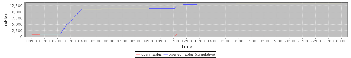 avg(open_tables) = 1183.99 avg(opened_tables (cumulative)) = 10976.37