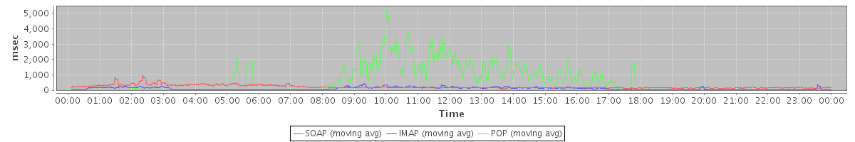 Host zm21.stanford.edu: Mailboxd: Response Time by Client Protocol