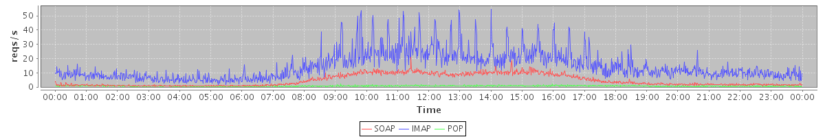 Host zm21.stanford.edu: Mailboxd: Request Rate by Client Protocol