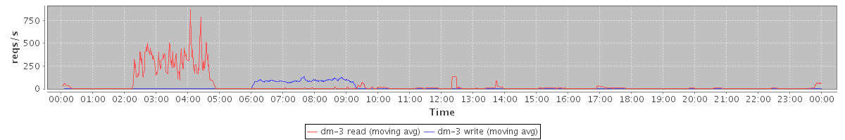 avg(dm-3 read) = 1304.66 avg(dm-3 write) = 453.99
