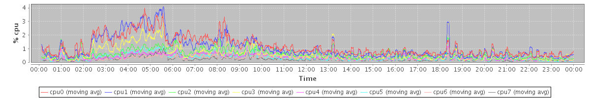 avg(cpu0) = 0.20 avg(cpu1) = 0.19 avg(cpu2) = 0.08 avg(cpu3) = 0.11 avg(cpu4) = 0.05 avg(cpu5) = 0.04 avg(cpu6) = 0.03 avg(cpu7) = 0.01