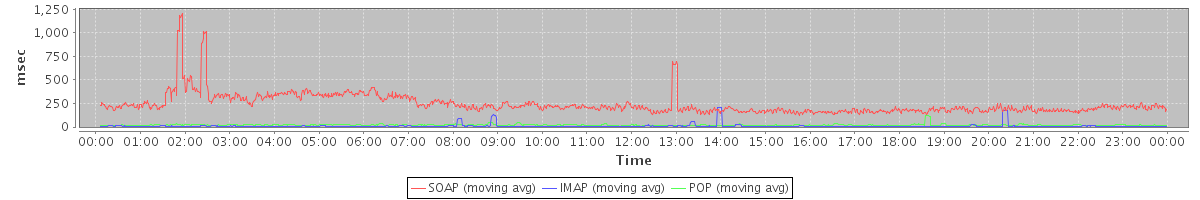 Host zm21.stanford.edu: Mailboxd: Response Time by Client Protocol