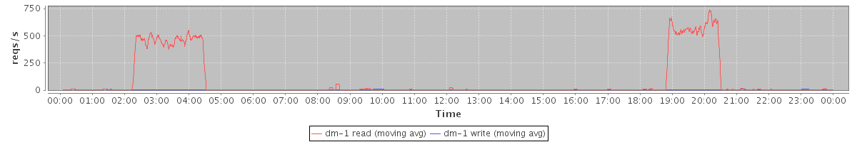 avg(dm-1 read) = 3004.71 avg(dm-1 write) = 66.69