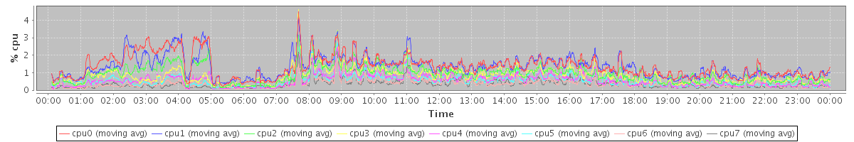 avg(cpu0) = 1.37 avg(cpu1) = 1.34 avg(cpu2) = 0.92 avg(cpu3) = 0.83 avg(cpu4) = 0.57 avg(cpu5) = 0.54 avg(cpu6) = 0.38 avg(cpu7) = 0.37