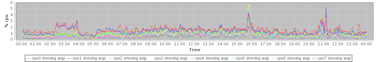avg(cpu0) = 0.23 avg(cpu1) = 0.33 avg(cpu2) = 0.14 avg(cpu3) = 0.14 avg(cpu4) = 0.10 avg(cpu5) = 0.07 avg(cpu6) = 0.05 avg(cpu7) = 0.06