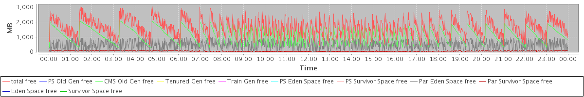 avg(total free) = 1641.21 avg(PS Old Gen free) = 0.00 avg(CMS Old Gen free) = 1109.61 avg(Tenured Gen free) = 0.00 avg(Train Gen free) = 0.00 avg(PS Eden Space free) = 0.00 avg(PS Survivor Space free) = 0.00 avg(Par Eden Space free) = 481.21 avg(Par Survivor Space free) = 50.39 avg(Eden Space free) = 0.00 avg(Survivor Space free) = 0.00
