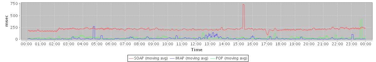 Host zm04.stanford.edu: Mailboxd: Response Time by Client Protocol