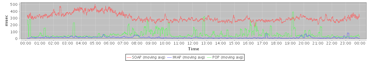 Host zm09.stanford.edu: Mailboxd: Response Time by Client Protocol