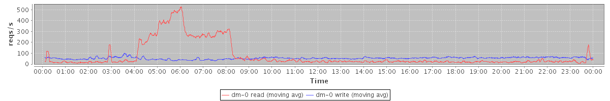 avg(dm-1 read) = 27.59 avg(dm-1 write) = 0.08