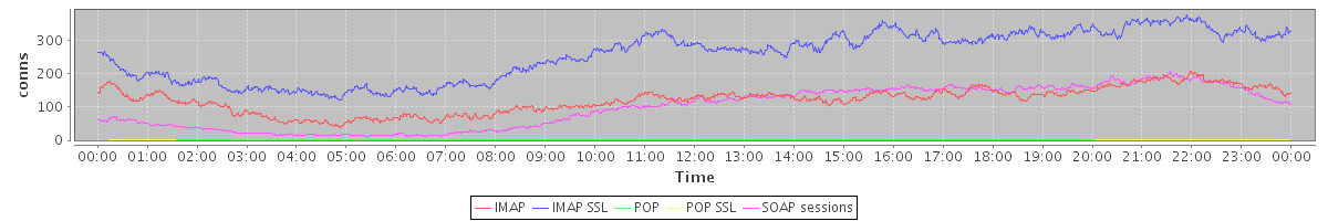 avg(IMAP) = 121.03 avg(IMAP SSL) = 255.90 avg(POP) = 0.01 avg(POP SSL) = 0.13 avg(SOAP sessions) = 99.23