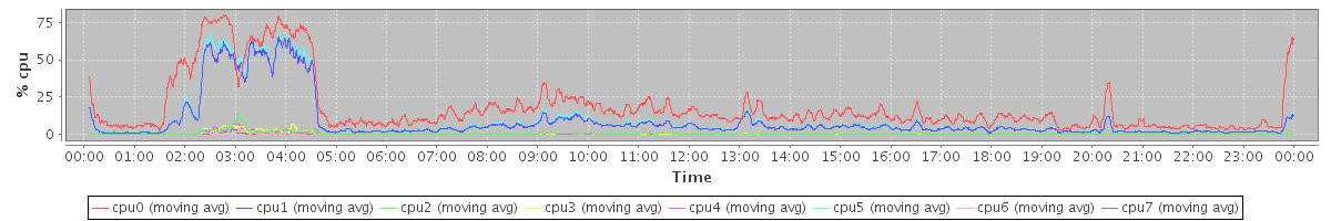 avg(cpu0) = 0.20 avg(cpu1) = 0.18 avg(cpu2) = 0.11 avg(cpu3) = 0.11 avg(cpu4) = 0.08 avg(cpu5) = 0.10 avg(cpu6) = 0.03 avg(cpu7) = 0.04