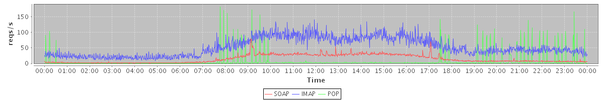 Host zm02.stanford.edu: Mailboxd: Request Rate by Client Protocol