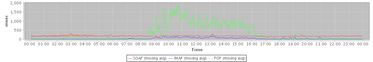 Host zm02.stanford.edu: Mailboxd: Response Time by Client Protocol