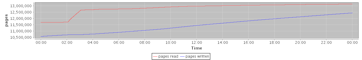 avg(pages read) = 12826889.81 avg(pages written) = 11459168.70