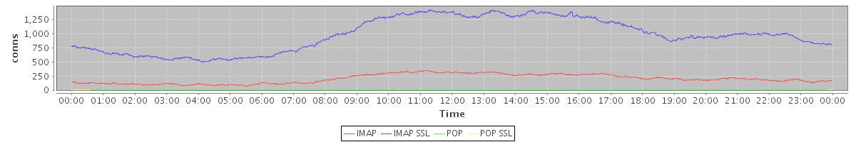 Host zm09.stanford.edu: Mailboxd: Active Connections by Client Protocol