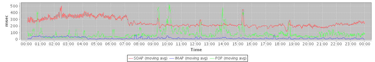 avg(SOAP) = 251.06 avg(IMAP) = 17.54 avg(POP) = 83.09