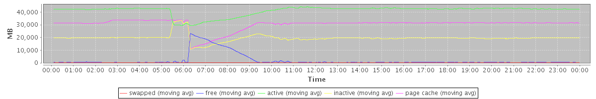 avg(swapped) = 9.34 avg(free) = 2061.20 avg(active) = 41092.61 avg(inactive) = 19531.45 avg(page cache) = 30331.00