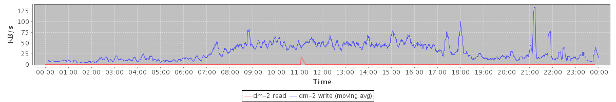 avg(dm-3 read) = 0.96 avg(dm-3 write) = 11.68