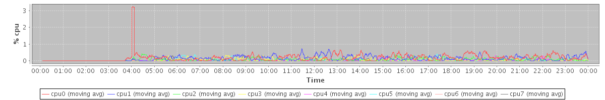 avg(cpu0) = 0.04 avg(cpu1) = 0.07 avg(cpu2) = 0.01 avg(cpu3) = 0.01 avg(cpu4) = 0.01 avg(cpu5) = 0.00 avg(cpu6) = 0.00 avg(cpu7) = 0.00