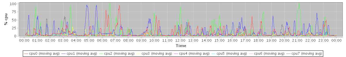 avg(cpu0) = 5.73 avg(cpu1) = 10.43 avg(cpu2) = 0.44 avg(cpu3) = 0.43 avg(cpu4) = 0.11 avg(cpu5) = 0.21 avg(cpu6) = 0.03 avg(cpu7) = 0.09