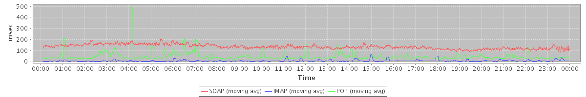 avg(IMAP) = 148.58 avg(IMAP SSL) = 635.95 avg(POP) = 0.00 avg(POP SSL) = 0.69
