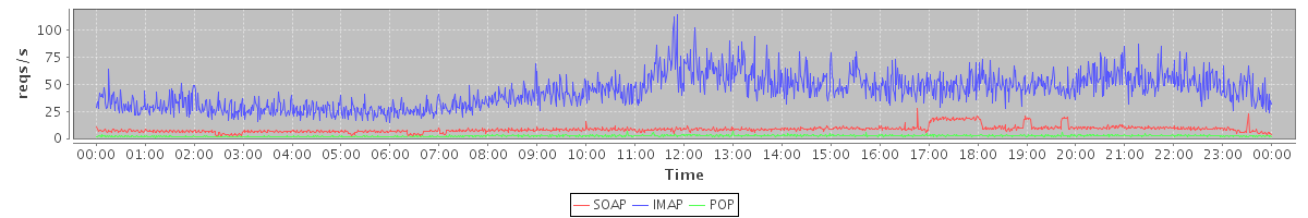 Host zm05.stanford.edu: Mailboxd: Request Rate by Client Protocol