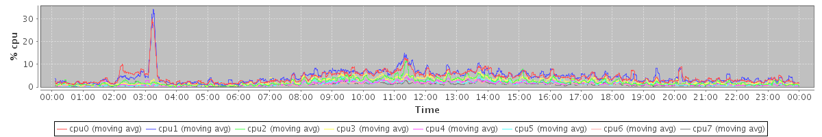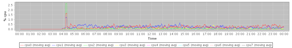 avg(cpu0) = 0.08 avg(cpu1) = 0.11 avg(cpu2) = 0.04 avg(cpu3) = 0.03 avg(cpu4) = 0.02 avg(cpu5) = 0.02 avg(cpu6) = 0.01 avg(cpu7) = 0.01